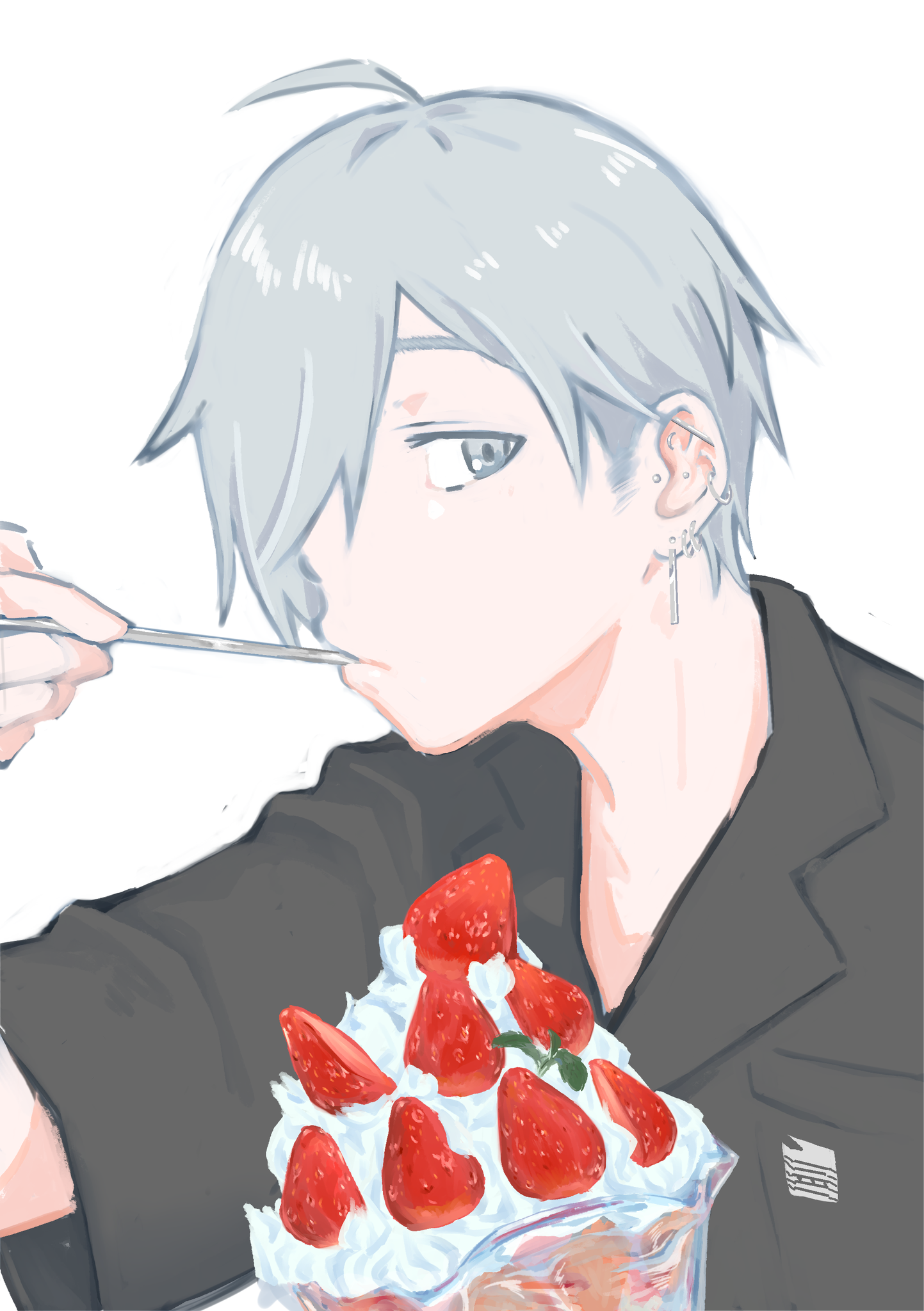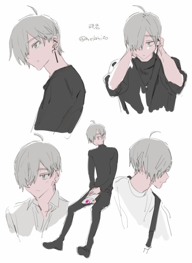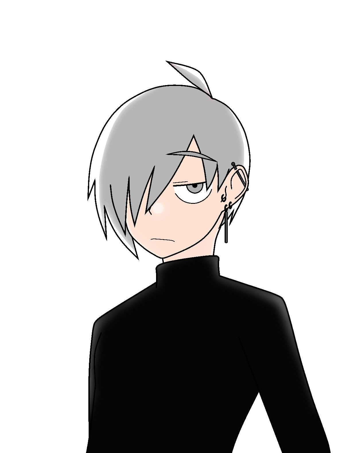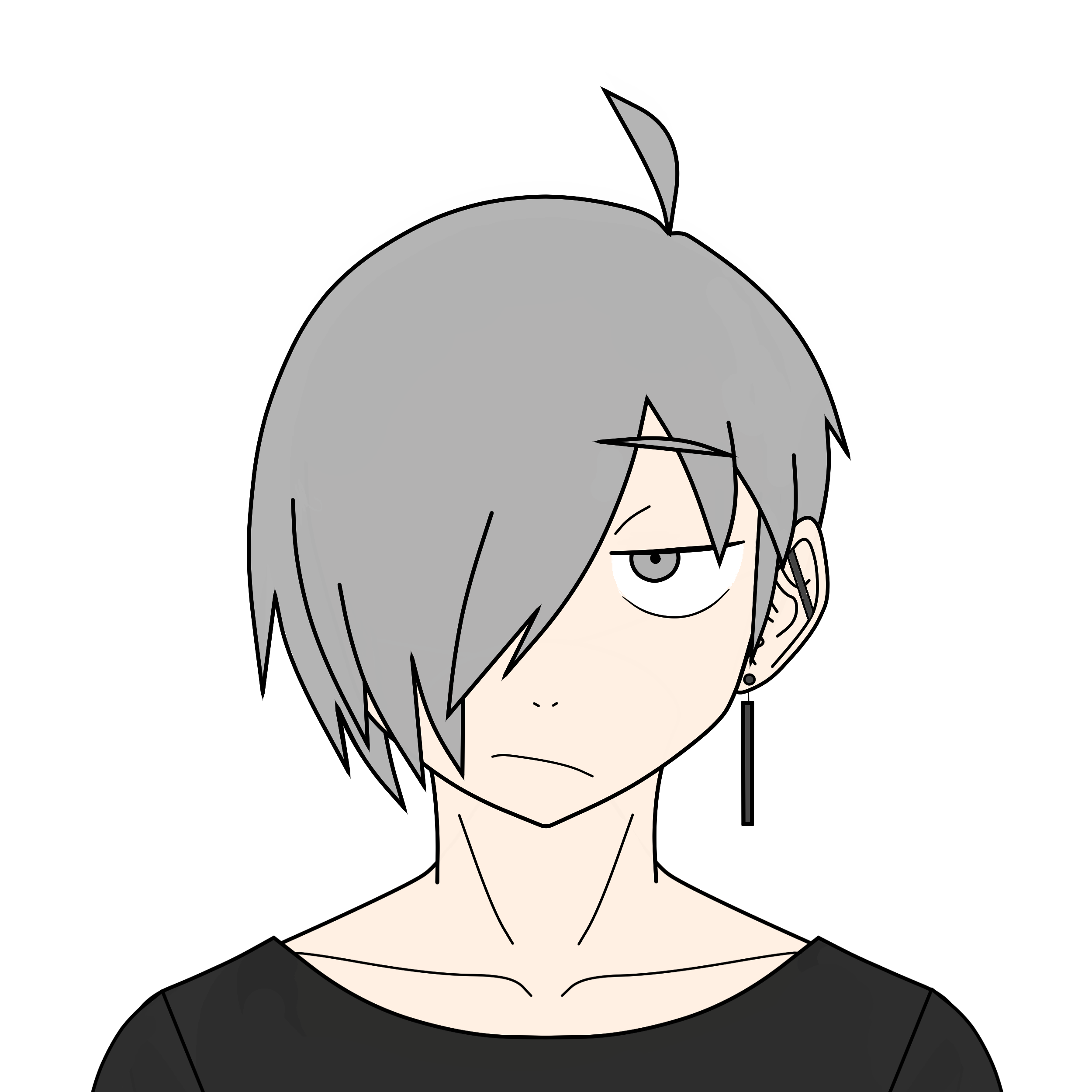 • 髮:銀灰色■(脱色) の直毛, 右目を隱す