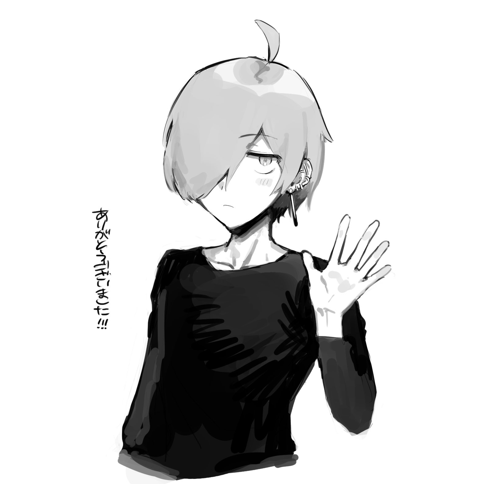 • 髮:黑色■で やや癖毛, 兩目を隱す